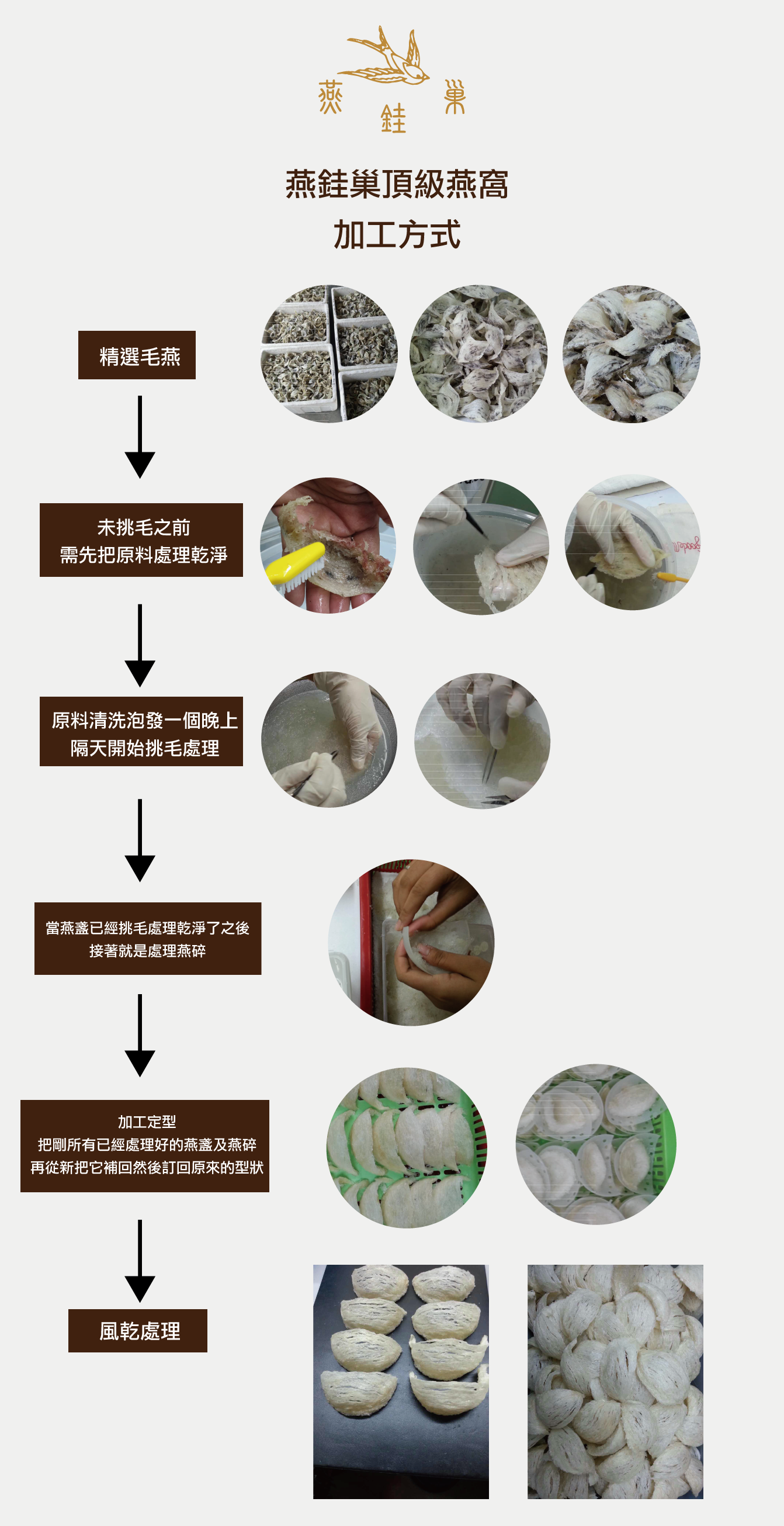 燕銈巢頂級燕窩源自正統燕窩產地馬來西亞,所生產的燕窩與馬來西亞當地燕窩工廠合作,從燕窩挑選,純水清潔洗淨到加工的品質控管都將其完善的整合並嚴格控制燕窩成本與品質,使消費者能以平實價格享用到頂級燕窩